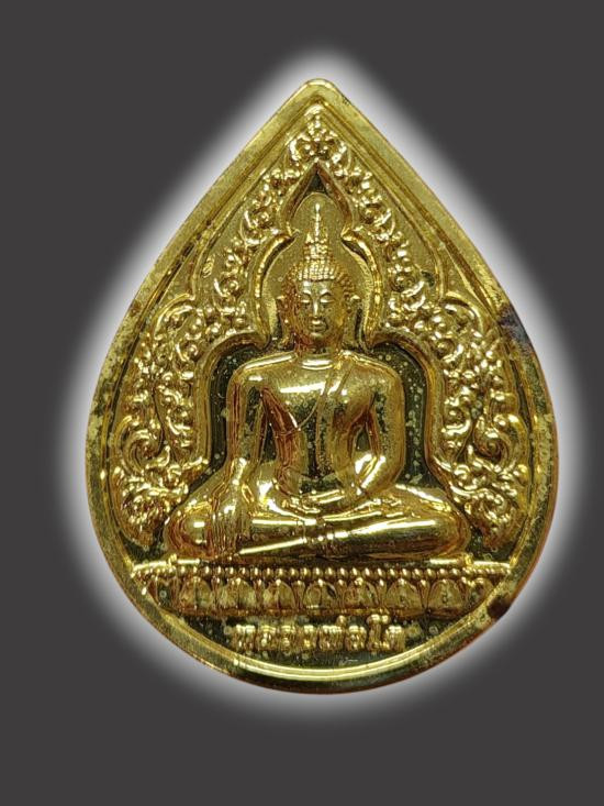 A2077.เหรียญหยดน้ำ หลวงพ่อโต วัดบางพลีใหญ่ใน จ.สมุทรปราการ รุ่น ๑ กฐินพระราชทาน เนื้อกะไหล่ทอง ปี ๒๕๖๐ กล่องเดิม |