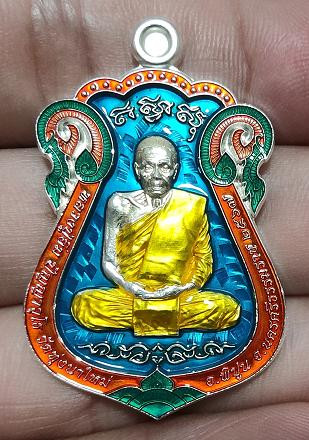 เหรียญหลวงพ่อสำเร็จศักดิ์สิทธิ์ ( เนื้อเงินลงยา ) ปี 2558 จ.สระบุรี สภาพสวย มาพร้อมกล่องเดิมครับ