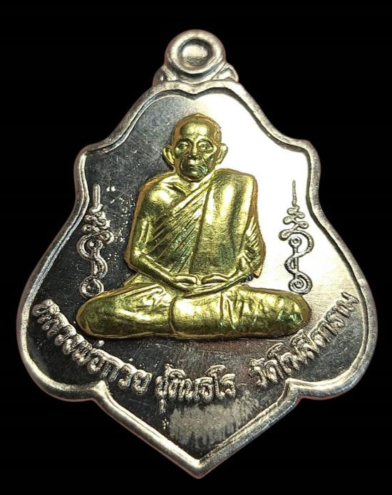 เหรียญหลวงพ่อกวย รุ่นแรงครูเนื้ออัลปาก้าหน้ากากทองทิพย์ แยกออกมาจากชุดกรรมการ |