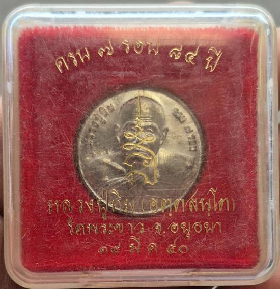 วัดใจ 100 เหรียญเจ้าสัวรวยพันล้าน หลวงปู่ศิลา วัดโพธิ์ศรีสะอาดแกเปะ จ.กาฬสินธุ์ 2567 งาน 2K หมายเลข 95 กล่องเดิม |