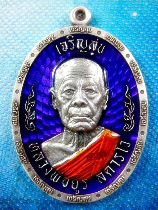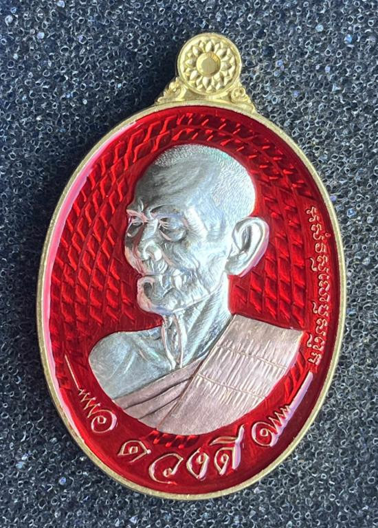 หลวงพ่อรวย วัดตะโก เหรียญอายุวัฒนะมงคล 90 เนื้อเงินลงยาแดง ปี 2553 พร้อมกล่องเดิมครับ |