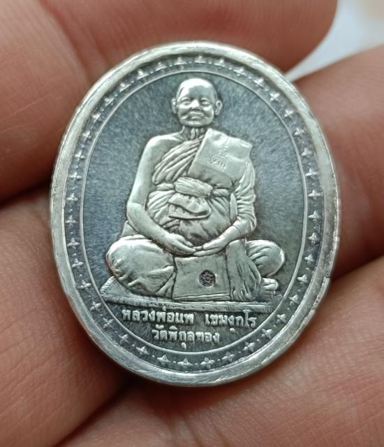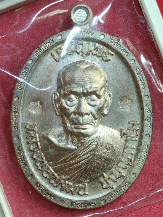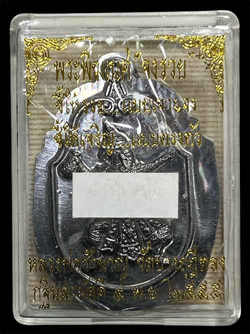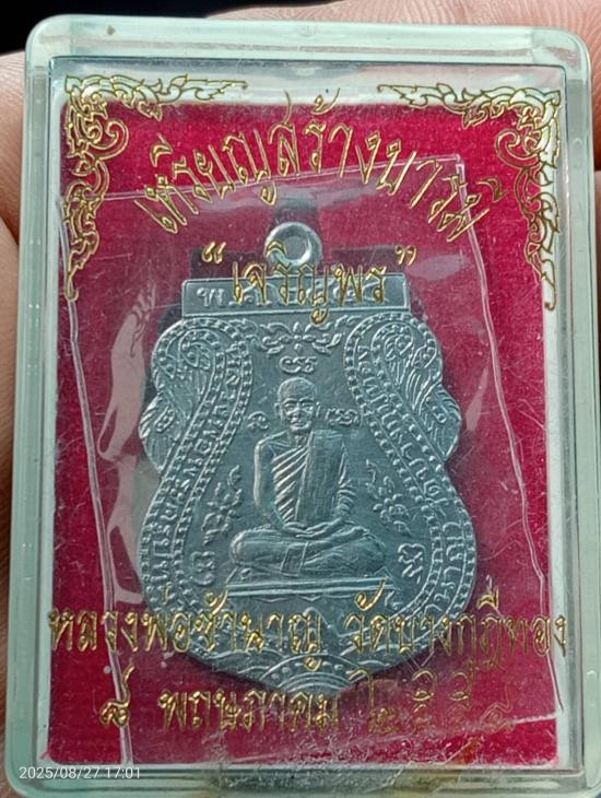 วัดใจ 100 เหรียญเจริญพรบน 6 รอบ หลวงพ่อเพ็ชร วัดประดู่ทรงธรรม จ.อยุธยา 2566 ชุบเงิน ลงยาแดง หมายเลข 96 สร้าง 200 เหรียญ กล่องเดิม |