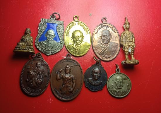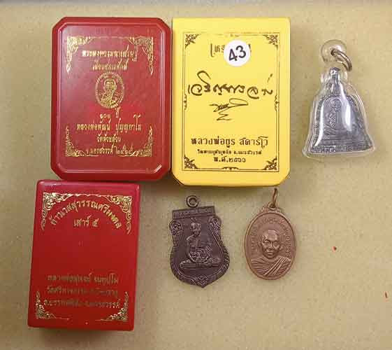 พระหลวงพ่อพัฒน์ + เหรียญหลวงพ่อยูร + ท้าวเวสสุวรรณหลวงพ่อสุพจน์ +เหรียญระฆังหลวงพ่อลออ+ เหรียญหลวงพ่อพวง วัดหนองกระโดน + เหรียญพระครูนิทัศน์วรคุณ (ชม) วัดสุคตวรารามปี 19 นครสวรรค์ |