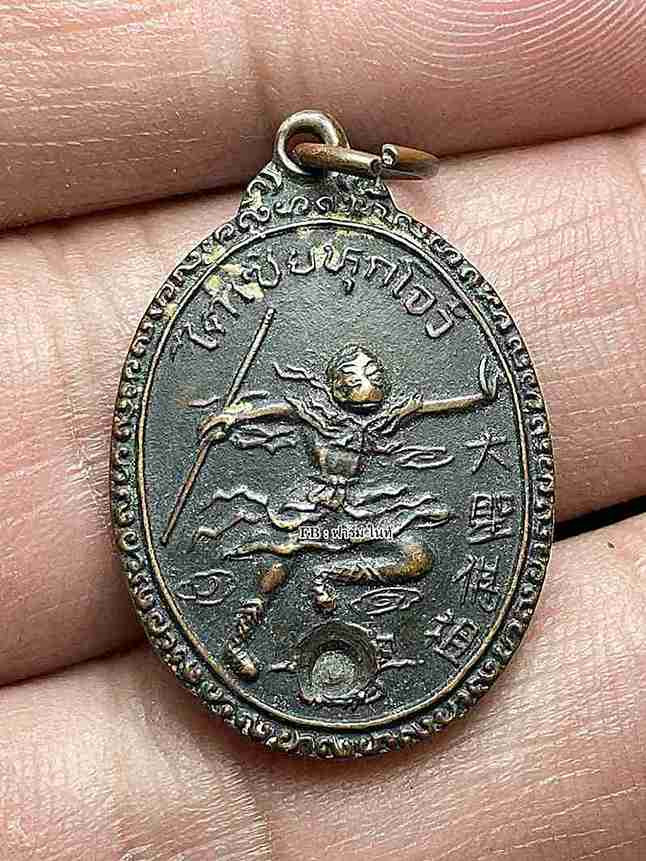 *ที่ฆ้อนมีอีกเยอะครับ เคาะเดียว* เหรียญเจ้าพ่อเห้งเจีย (ไต่เซี่ยฮุกโจ้ว) ปี 2525 เนื้อทองแดงรมดำ สภาพพอสวยครับ
