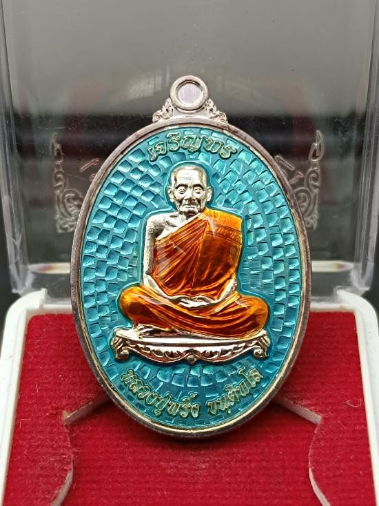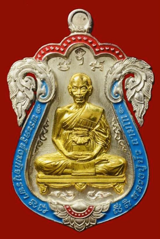 เหรียญเม็ดแตง โภคทรัพย์ ปี 55 เนื้อเงินลงยาสีแดง หลวงพ่อจรัญ วัดอัมพวัน พร้อมกล่องเดิม เคาะแรก