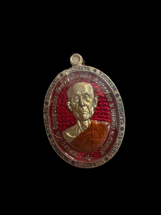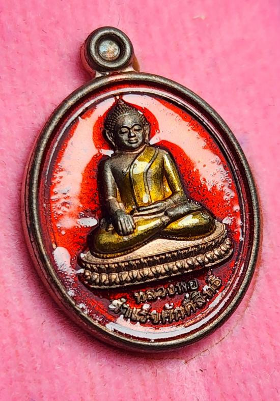 เหรียญแสตมป์ หลวงพ่อสมชาย วัดเขาสุกิม ปี 2540 กระไหล่ทองลงยา (หายาก |