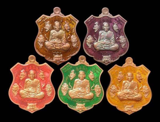 มหาปราบ 2559 เหรียญหลวงปู่บุญ วัดบ้านหมี่ อุบลราชธานี เนื้อสัตตะ ลงยาสีแดง จีวรเหลือง หลังหนุมานเชิญธง โค๊ด เลข 93 |