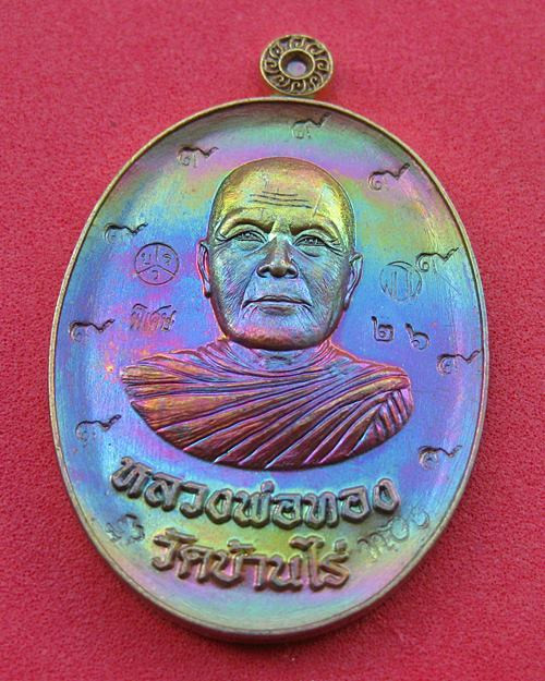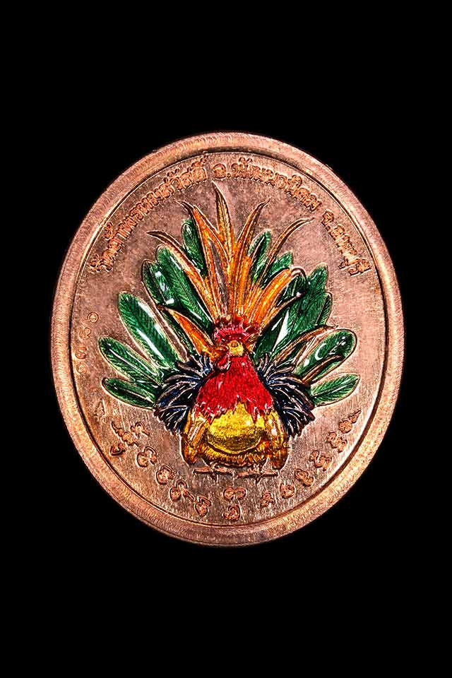 เหรียญไก่เศรษฐี หลวงปู่สรวง วัดถ้ำพรหมสวัสดิ์ จ.ลพบุรี ปี 57 เนื้อทองแดงลงยา