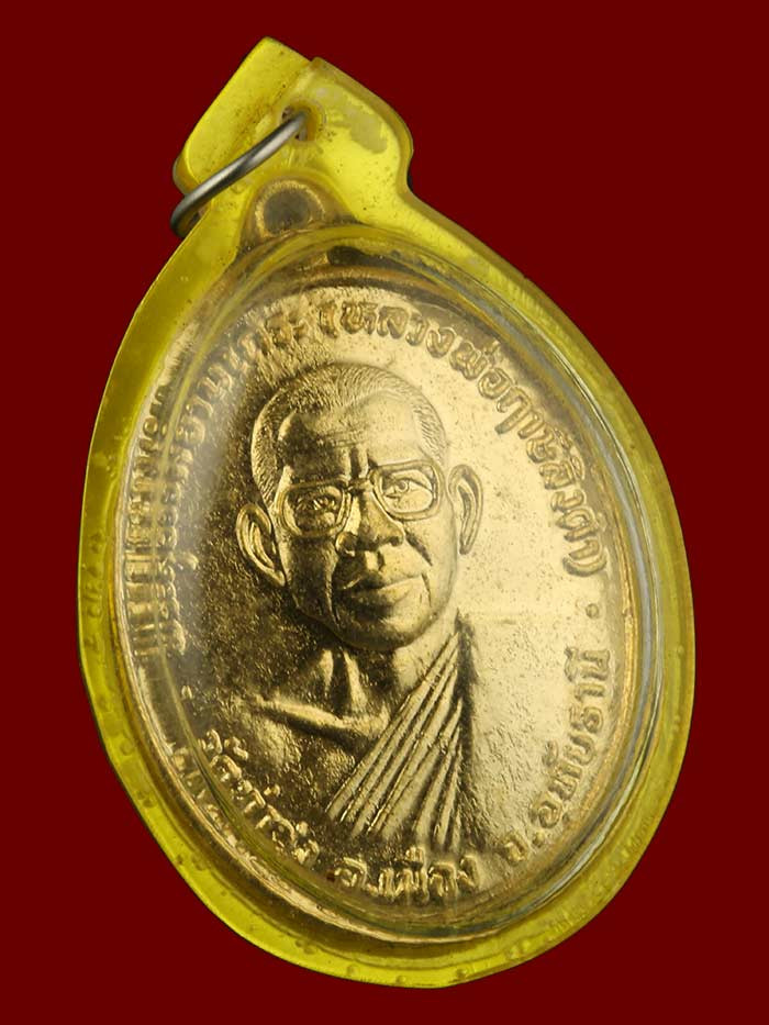 วัดใจ เหรียญทำน้ำมนต์ หลวงพ่อฤาษีลิงดำ วัดท่าซุง อุทัยธานี เนื้อกะไหล่ทอง บล็อคแรกนิยมคอขีด เลี่ยมเดิม ปี2532 |
