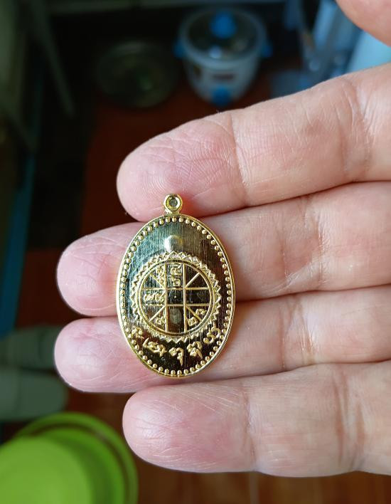 เหรียญหล่อท้าวมหาพรหมสุริยเทพ หลวงปู่กาหลง เขี้ยวแก้ว วัดเขาแหลม สระแก้ว รุ่น ครอบเศียรพระลักษณ์ ปี 2549 นวะโลหะพิเศษแก่ทองคำ ตอกโค๊ด หมายเลข ๑๔๒๑ จารมือ สวยมากครับ |