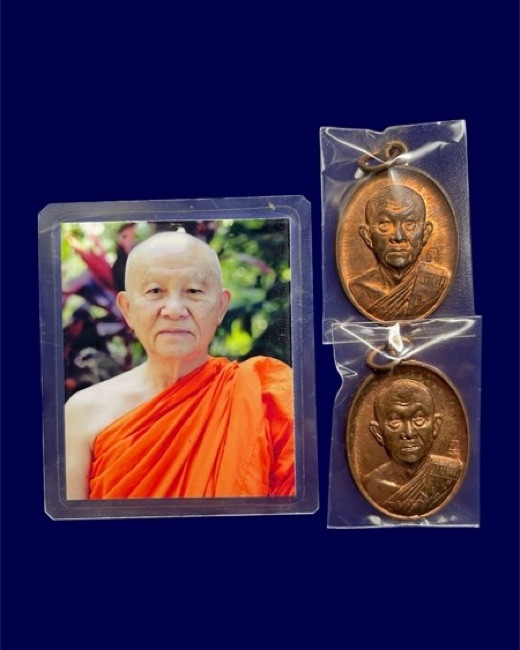 เหรียญถวายภัตราหาร รุ่นแรก 3 องค์ + รูปหล่อ รุ่นแรก 1 องค์ หลวงพ่อสด วัดหลวงพ่อสดธรรมกายราม จ.ราชบุรี |