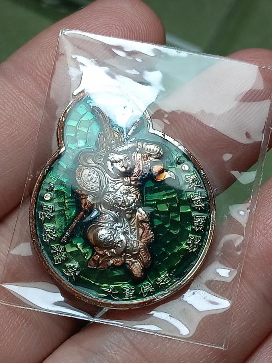 HOT!!! เหรียญเสมาอายุยืน ปี 2555 เนื้อเงินลงยาสีเขียว เลขโค๊ด 228 หลวงพ่อรวย วัดตะโก เคาะเดียว |