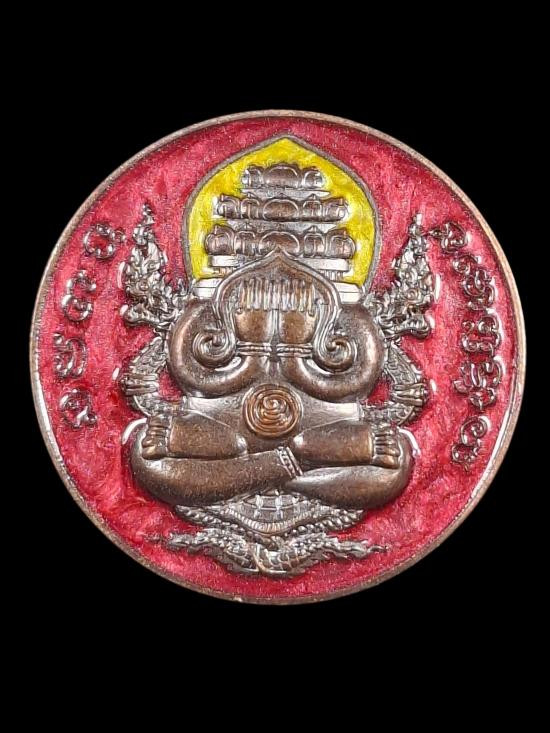 เหรียญปิดตาพังพระกาฬ รุ่นมหาอำนาจ (หลวงปู่อิ่ม วัดทุ่งนาใหม่ จ.นครศรีธรรมราช) เนื้อชุบเงินลงยาแดง หน้ากากนวะ หลังหน้ากากนวะ หมายเลข ๔๖ (สร้าง 80 เหรียญ) กล่องเดิม |