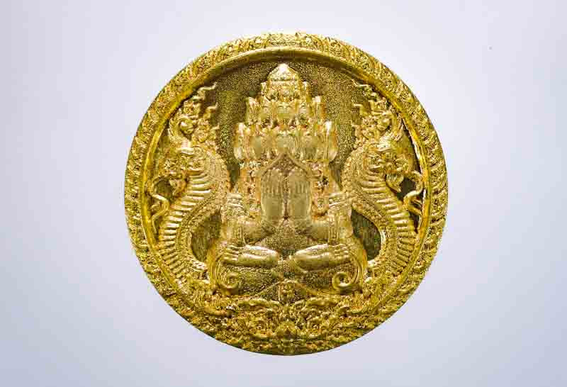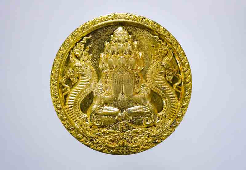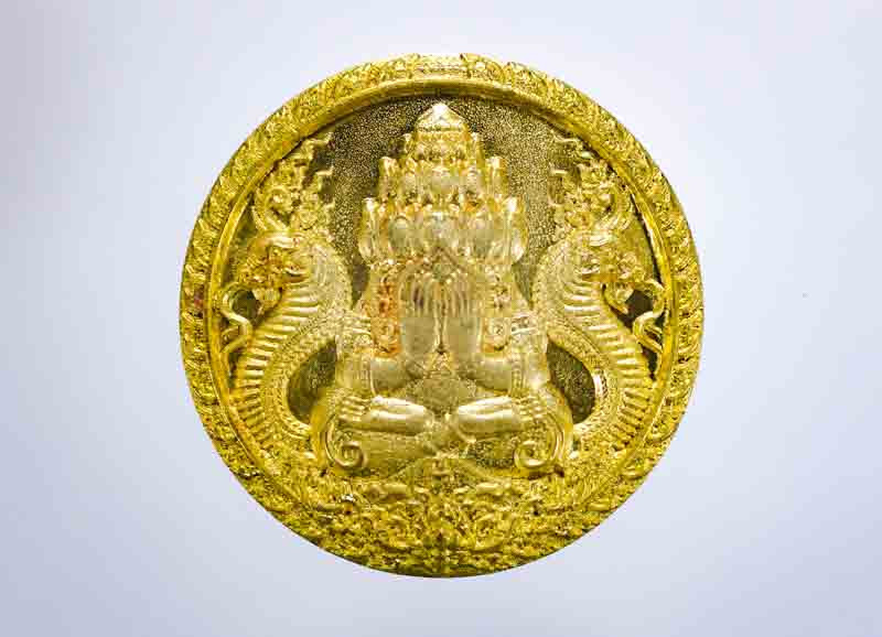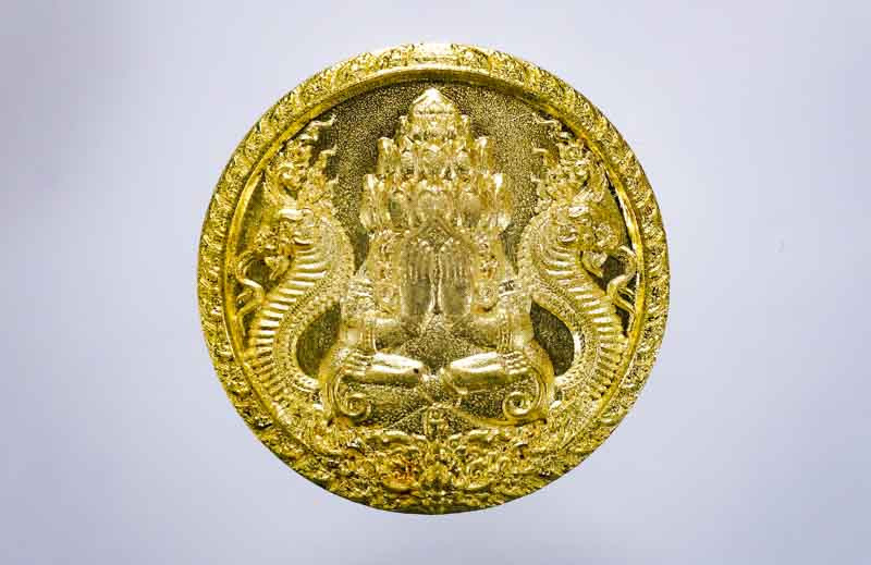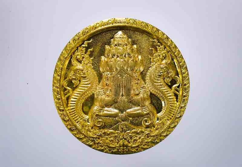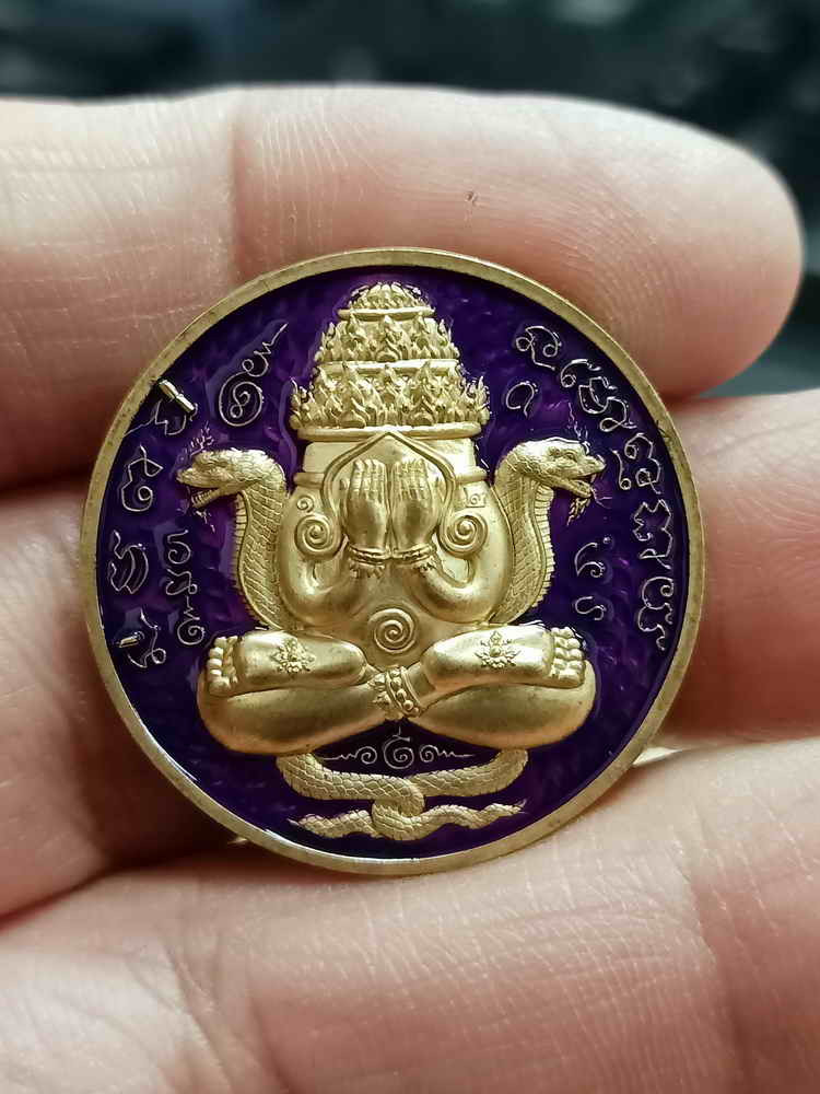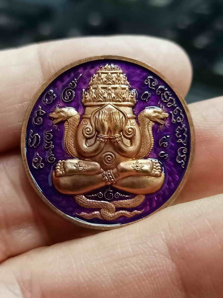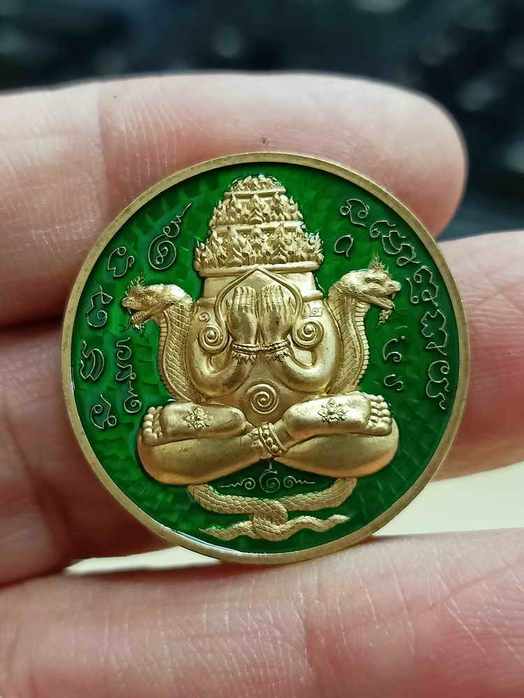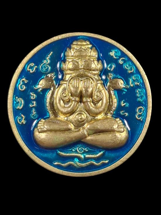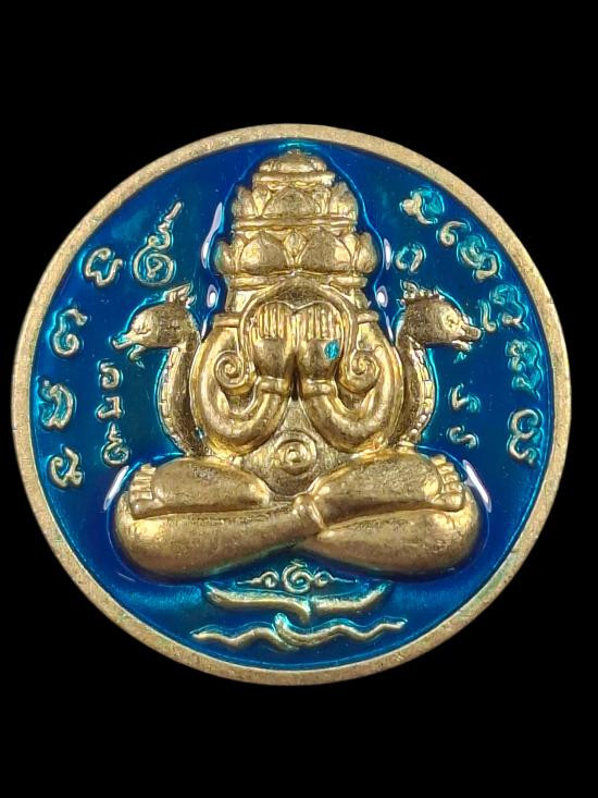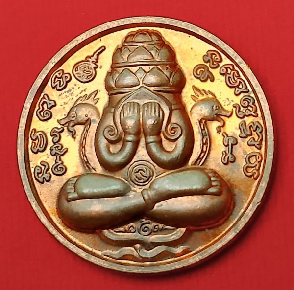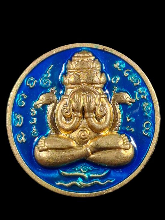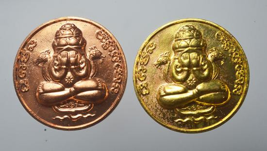 เหรียญปิดตาพระโพธิสัตว์พังพะกาฬ เนื้อทองแดงชุบทองไมครอน เลข590 ตอกสองโค๊ตแยกชุดพิเศษกรรมการ 9 รอบ 9 พิธี 108 ปี ท่านขุนพันธ์ จ.นครศรีธรรมราช ปี 2549 |