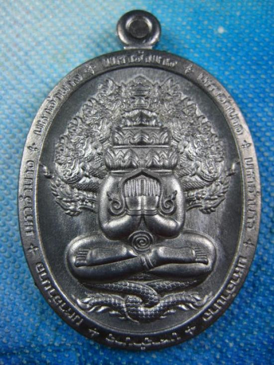 เหรียญปิดตาพังพระกาฬ รุ่นปกเกล้า ปี49 เนื้อนวะกลับดำ ตอกเลข 432 |