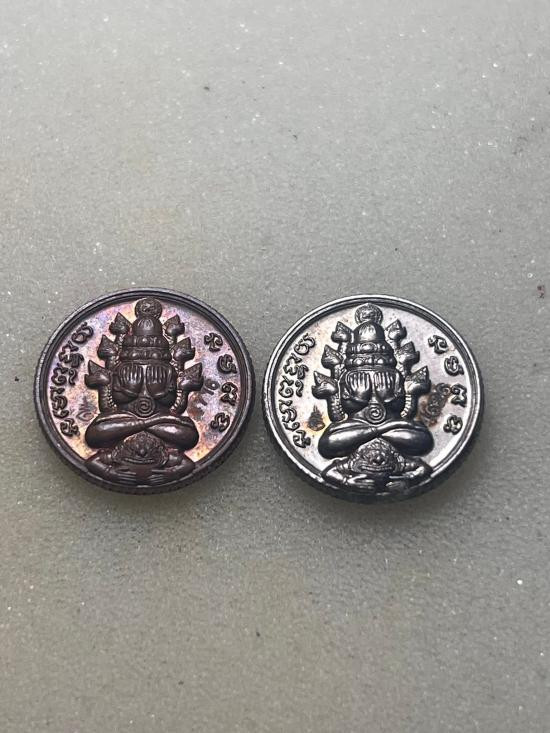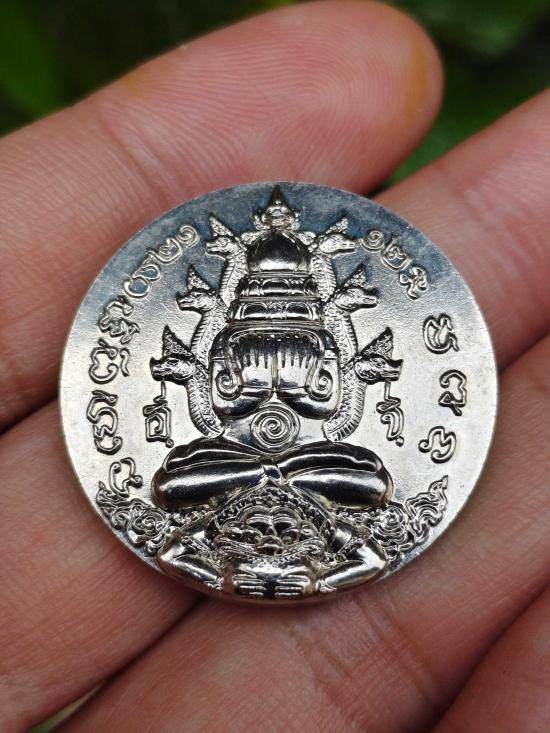 เหรียญปิดตาพระโพธิสัตว์พังพะกาฬ เนื้อทองขาวเคลือบเงินผิวโบราณ เลข590 ตอกสองโค๊ตแยกชุดพิเศษกรรมการ 9 รอบ 9 พิธี 108 ปี ท่านขุนพันธ์ จ.นครศรีธรรมราช ปี 2549 |