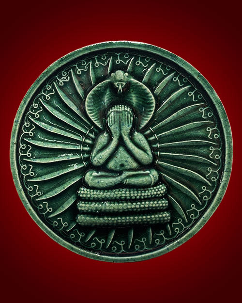ปิดตาพังพการกระเบื้องเขียวลายน้ำทองเหลี่ยมกรอบเงิน |