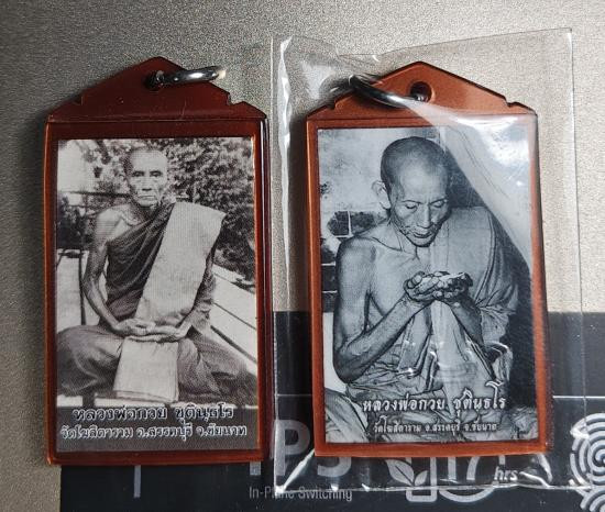 รูปถ่ายหลวงพ่อกวยหลังแผ่นยันต 2 ชิ้น |