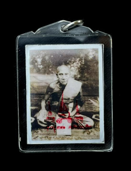 รูปถ่ายย้อนยุค ปี 58 หลวงพ่อกวย วัดโฆสิตาราม ชัยนาท ยันต์ตุ๊กตาคู่ เม็ดสีลายดอกบัว