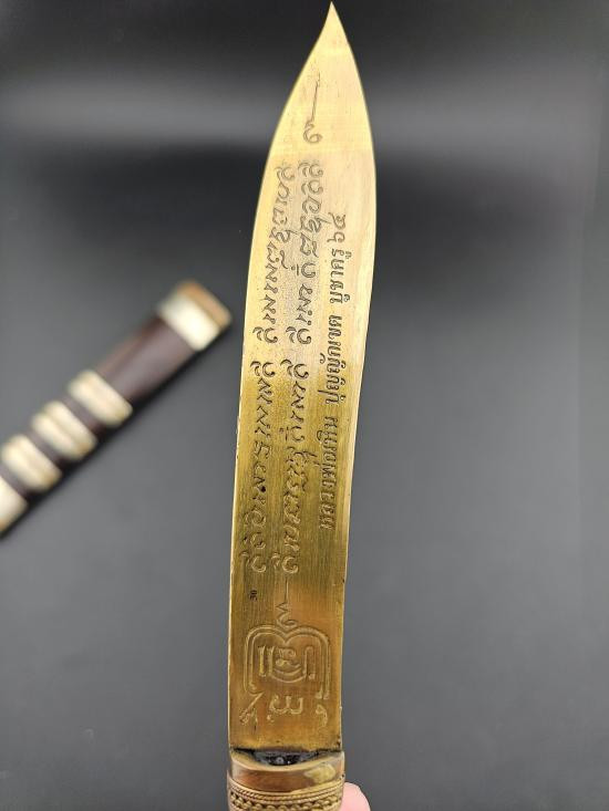 "วัดใจ"มีดหมอ หลวงพ่อเหิน สำนักสงฆ์ป่าแดง จ.เพชรบูรณ์ รุ่น บูชาครู รุ่นแรก พ.ศ.2564 ใบทองเหลือง ยาวรวม 9.5 นิ้ว เลข30