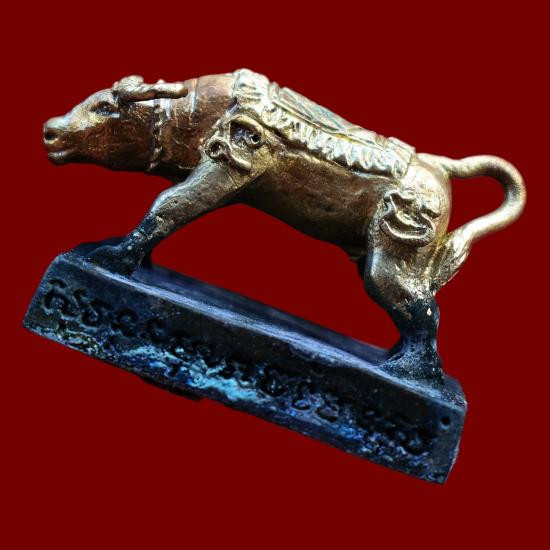 *** เคาะเดียวแดง ทุกรายการ *** ควายธนู เนื้อทองผสม ใต้ฐานอุดผง ฝังตะกรุด หลวงพ่อยุทธ วัดหนองนกเขียนสามัคคี นครราชสีมา ปี 2554 มีซองจากวัด สภาพตามรูป