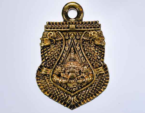 เคาะเดียวแดง 250 พญาครุฑทรงมหิธานุภาพ เชิญธงเศรษฐี วัดครุฑธาราม จ.พระนครศรีอยุธยา พิมพ์ใหญ่ สูง 4.5 ซ.ม. เนื้อตริยะโลหะ (สัมฤทธิ์ผล) ชุบ 2 K ลงยาราชาวดี ซีลเดิมยังไม่ได้แกะ