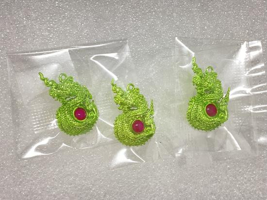 เคาะเดียวแดง 100 ( 3 อัน ) จี้มณีเศรษฐีนาคา วัดไทย จ.หนองคาย เนื้อสัมฤทธิ์ชุบอีโค๊ตเขียว กล่องเดิม |
