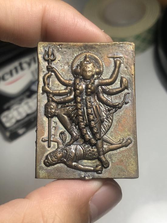วัดใจ เหรียญเจ้าแม่กาลี หลังยันต์จีน ไม่ทราบที่ มีตอกโค้ด เนื้อปีกเครื่องบิน |