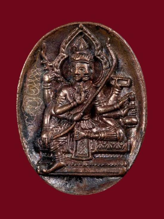 เหรียญหล่อโบราณท้าวมหาพรหมสุริยเทพ ของหลวงปู่กาหลง เขี้ยวแก้ว แห่งวัดเขาแหลม อ.วังสมบูรณ์ จ.สระแก้ว รุ่น ครอบเศียรพระลักษณ์ ปี 49มีโค๊ตและหมายเลข3210 รอยจารสวยๆ+ซองเดิมๆ