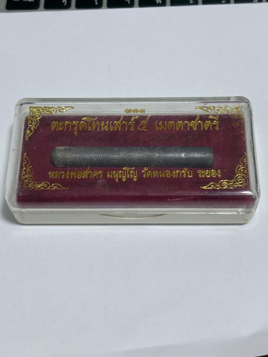 ล็อกเก็ตเปิดฟ้าฉากเทา หลังบรรจุผงพุทธคุณ ตะกรุด 1 ดอก ผ้าธงแดง หลวงพ่อชำนาญ วัดบางกุฎีอง จ.ปทุมธานี ปี2548+ตลับสแตนเลส ตามรูป