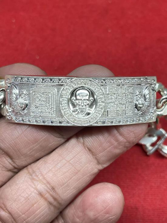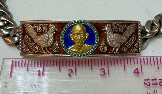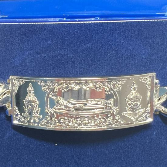 เลสข้อมือ ท้าวเวสสุวรรณจาตุมหาราชิกา หลวงพ่อพระนอนศักดิ์สิทธิ์ วัดพระนอนแม่ปูคา จ. เชียงใหม่ ครูบากฤษดา ร่วมปลุกเสก เนื้อกะไหล่เงิน เลข 55 ยาว 7 นิ้ว