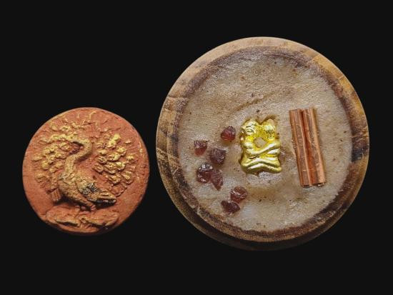 เคาะเดียวแดง พญายูงคำ รุ่นแรก เนื้อเกสรทั้งห้า และ ตลับไม้สีผึ้งเนื้อหอม รังผึ้งร้าง ขวางเดือนขวางตะวัน รุ่นแรก ฝังอิ่น ตะกรุด ในเมตตาบารมี เจ้าปู่จั่นต่า กาวิสาละ ครูบากฤษดา เมตตาเษก