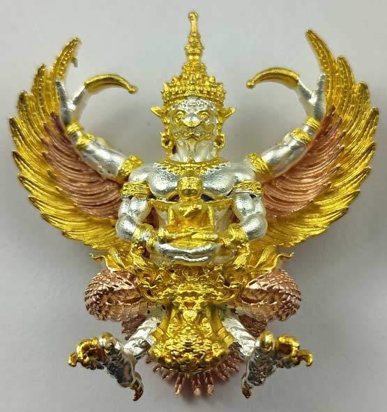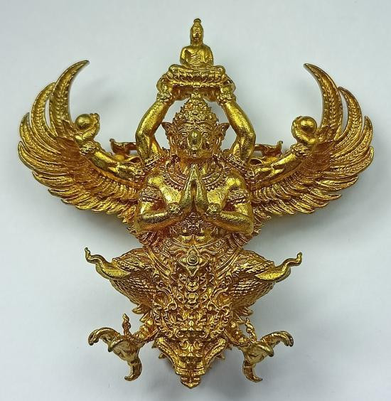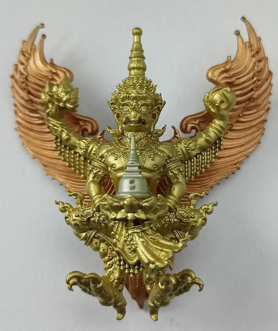 พญาครุฑ รุ่น ราชันมหาเศรษฐี วัดครุฑธาราม (พิมพ์ใหญ่ ขนาด 4.8ซม) เนื้อเบญจโลหะ เบอร์ 74 พร้อมกล่องเดิมครับ