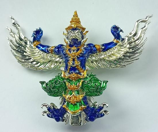 พญาครุฑ 100 ปี เศรษฐีปากน้ำโพ หลวงพ่อพัฒน์ ปุญญกาโม วัดห้วยด้วน เนื้อมหาชนวนชุบเงินลงยาราชาวดี (ชุดพิเศษตัดบิล) เบอร์ 174 พร้อมกล่องครับ (องค์ใหญ่ ขนาด 4 x 5.5ซม.)