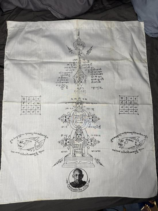 ผ้ายันต์ล้านนา เมตตามหาโชคลาภ สุดยอดงานพุทธศิลป์ ยุคใหม่ มนต์เสน่ห์แห่งอักขระโบราณ งานเขียนมือ ล้วนๆ ขนาด105x87 ซม ผืนใหญ่สะใจ**เคาะแรก**