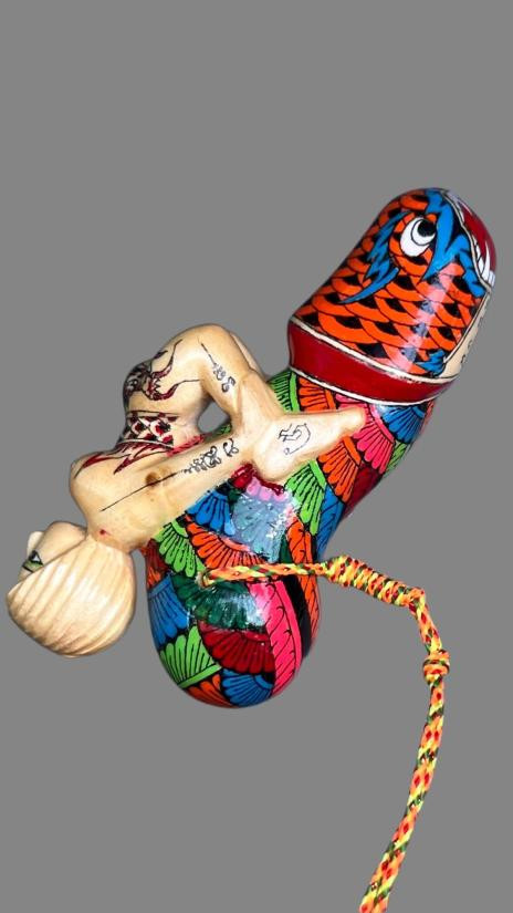 ปลัดขิกไม้โมกขาวเขียนสีลายชะมดนางแอน พระอาจารย์ซ้ง วัดประดู่ อินทราวาส ตลิ่งชัน ปลัดขิกหัวชะมด นางแอนมังกรพันตัว