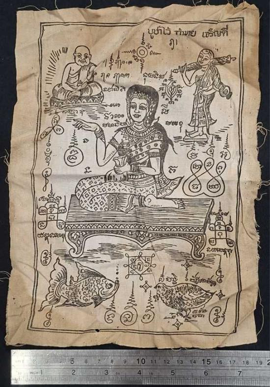 ***ผ้ายันต์นางกวักเก่า ไม่ทราบที่ไม่ทราบปี***สภาพเก่ามีคราบเหลือง***