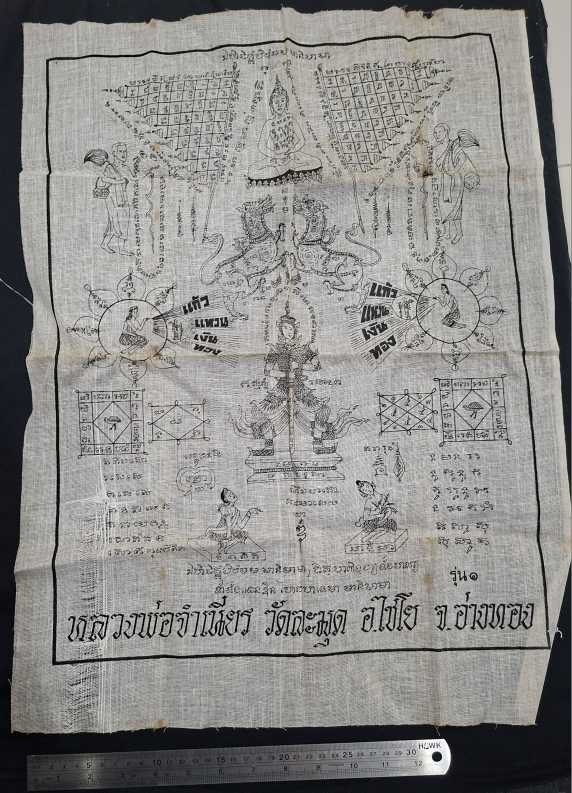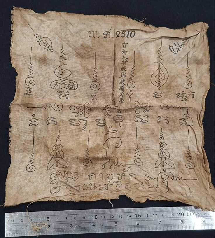 ***ผ้ายันต์เก่า พระยาพิชัยดาบหัก ปี 2510 ไม่ทราบที่***ผ้ายันต์สภาพเก่ามีคราบเหลือง***