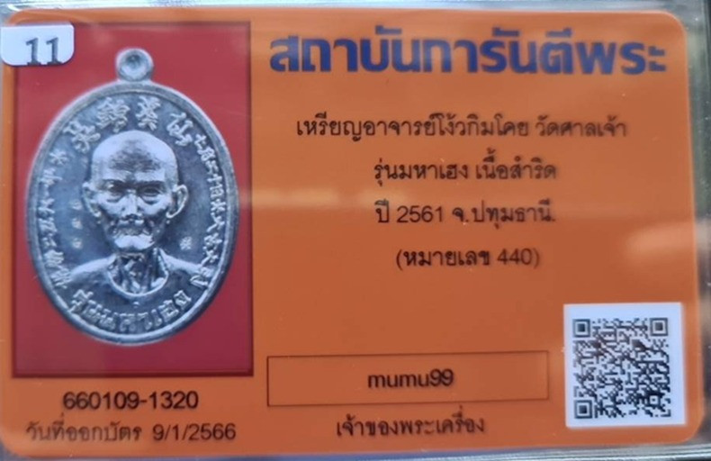 มีบัตรรับรองพระเครื่องของ