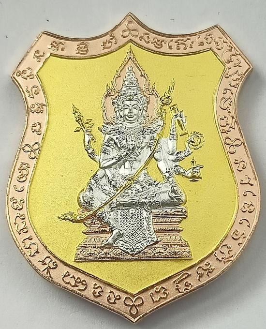 เหรียญท้าวมหาพรหม เจ้าสัวพันล้าน (จัดสร้างโดยบอย ท่าพระจันทร์) เนื้ออาปาก้าลงยา ลงยาพื้นสีฟ้า ขอบชมพู เบอร์ 1289 พร้อมกล่องครับ