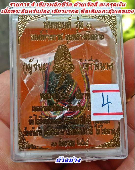 หุ่นพยนต์ รุ่น 3 กูผู้ชนะ หลวงปู่ศักดิ์ สมาหิโต รายการ 4 เขียวพลิกชีวิต ด้ายเจ็ดสี ตะกรุดเงิน เนื้อพระอินทร์แปลง ซีลพลาสติกหุ้มกล่องเดิม แกะลุ้นเลขสวยเอง |