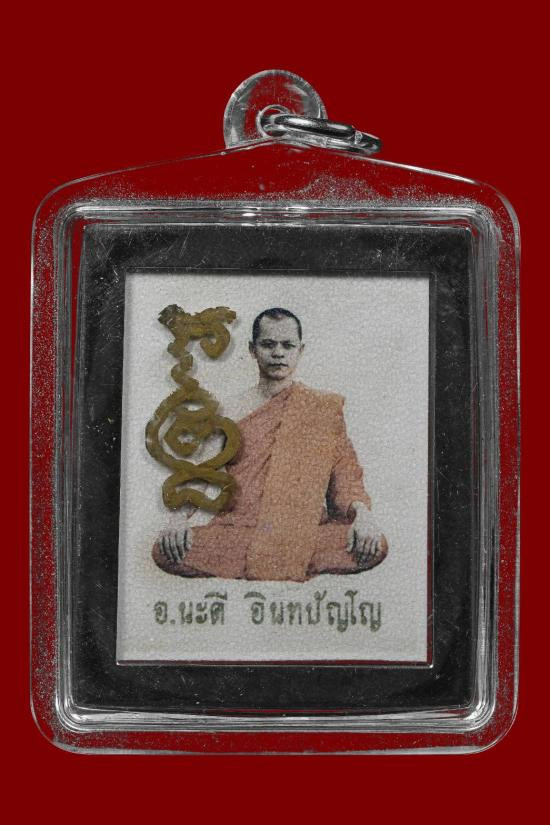 รูปถ่ายจับขอบเงิน จารหน้าหลัง พร้อมเกศา พระอาจารย์นะดี อินทปัญโญ |