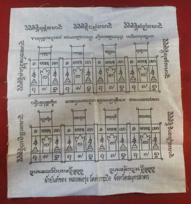 ผ้ายันต์ ยันต์ของหลวงพ่อรุ่ง วัดท่ากระบือ จังหวัดสมุทรสาคร ครับ (พระบ้าน ครับ) |