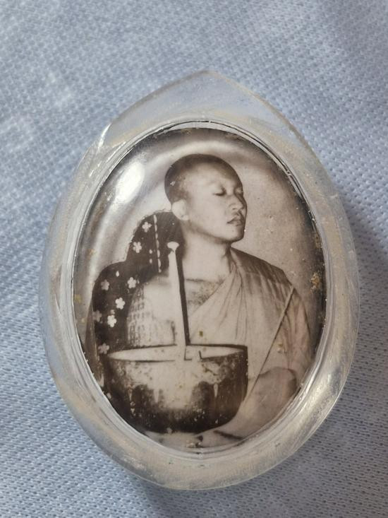 A5239.รูปถ่าย หลวงพ่อพยอม หลังตะกรุด ไม่ทราบที่ เคาะเดียวเเดง |