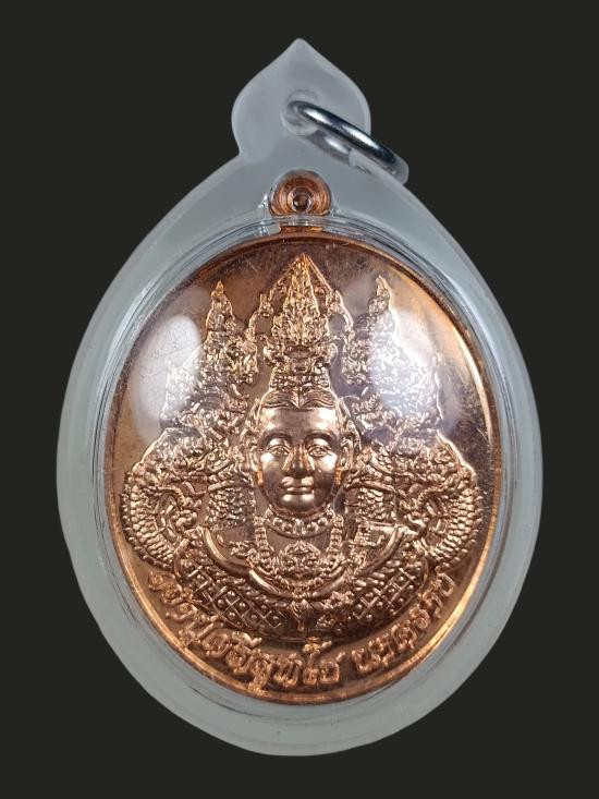 พญาศรีสัตตนาคราช นาคบาศ คุ้มดวง ร่ำรวย ปี 60 เนื้อทองแดง วัดไตรมิตร จ.นครพนม เลขสวย 499 กล่องเดิม งานสวย หล่อดี