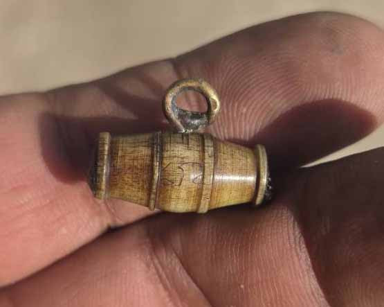 แดงเดียว 500 ตะกรุด ไม้ไผ่ ถักเชือก ยาว 2 นิ้ว อุดชานณรงค์ พร้อมพระผงสังกระจาย เลี่ยมเก่าไม่ทราบที่
