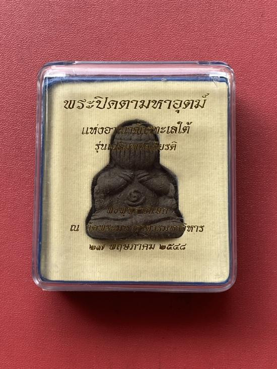 เคาะเดียวแดง ปิดตา มหาอุตม์ อาณาจักรทะเลใต้ รุ่น เฉลิมพระเกียรติ ปี48 เนื้อ ดินผสมว่านตะกรุดเงินคู่ มีโค๊ตและหมายเลข |