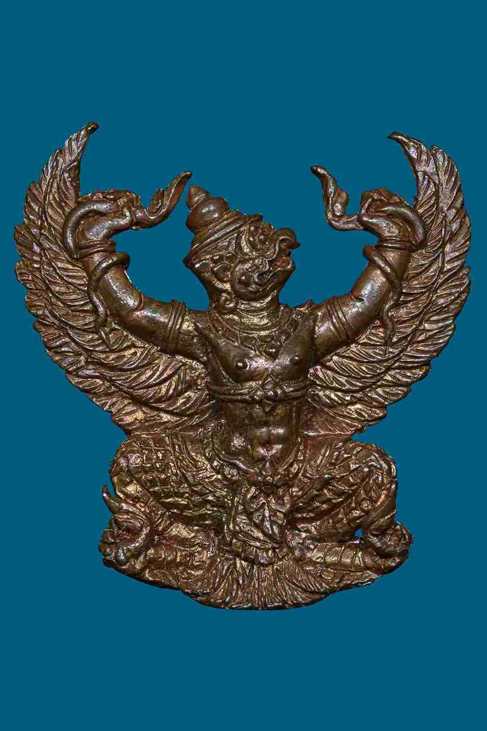 พญาครุฑ วัดหน้าพระบรมธาตุ นครศรีฯ เหรียญเนื้อทองทิพย์รุ่นเสริมบารมีรวยทรัพย์ปี๖๐ สวยๆ |
