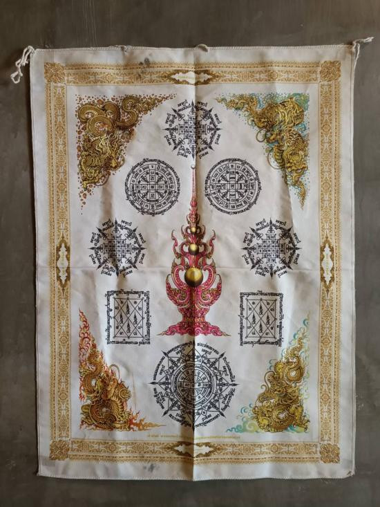 ผ้ายันต์ พระเกศแก้วพระจุฬามณีพุทธเจดีย์ศรีอริยเมตไตรย์ วัดราษฎร์ศรัทธาทำ จ.ปทุมธานี ผ้าหนา ผืนใหญ่ ขนาด 58 x 78 cm |