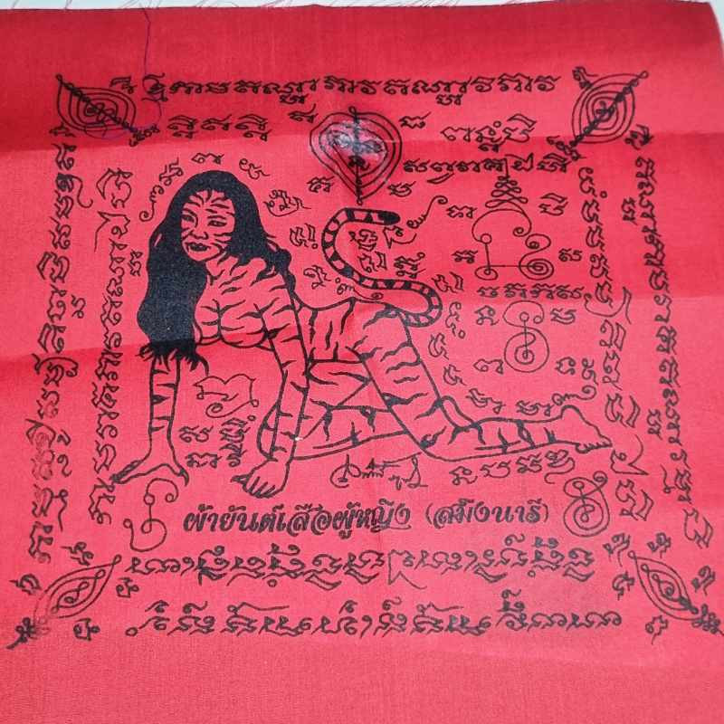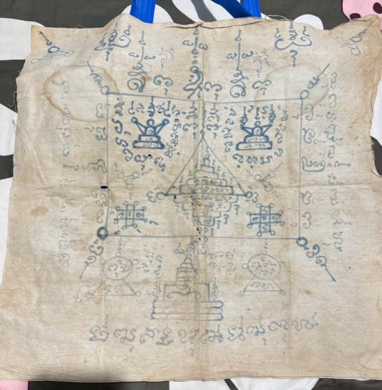 ผ้ายันต์จารหมึกเก่า ไม่ทราบที่ ผ้าดิบเก่า กว้าง 43 เซ็นติเมตร ยาว 43 เซ็นติเมตร เจ้าของเดิมเขียนบอกครูบาทางภาคเหนือ |